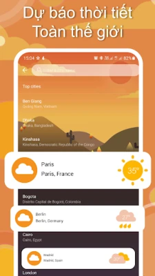 Bạn đang tìm kiếm một công cụ đáng tin cậy để nắm bắt mọi chuyển động của thời tiết? Ứng dụng Dự báo thời tiết là giải pháp toàn diện, biến thông tin khí tượng phức tạp thành trải nghiệm trực quan và dễ hiểu. Với giao diện được thiết kế tinh tế, tự động thay đổi hình nền để phản ánh chân thực điều kiện thời tiết hiện tại, bạn sẽ luôn cảm thấy thân thiện và được kết nối với môi trường xung quanh. Mọi chỉ số đều được trình bày rõ ràng, giúp bạn dễ dàng theo dõi và đưa ra những quyết định sáng suốt cho mọi hoạt động trong ngày, từ những kế hoạch đơn giản đến các hoạt động ngoài trời.