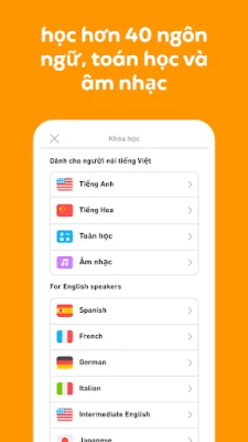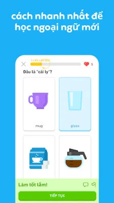 Chinh phục thế giới ngôn ngữ chưa bao giờ dễ dàng và thú vị đến thế! Được kiến tạo bởi các chuyên gia ngôn ngữ hàng đầu và tin dùng bởi hàng trăm triệu người học trên toàn cầu, Duolingo mở ra cánh cửa đến với tiếng Tây Ban Nha, tiếng Pháp, tiếng Hoa, tiếng Ý, tiếng Đức, tiếng Anh và vô vàn ngôn ngữ khác. Dù bạn mong muốn chuẩn bị cho chuyến phiêu lưu quốc tế, củng cố kiến thức học đường, nâng tầm sự nghiệp, kết nối văn hóa hay đơn giản là tìm niềm vui trong học hỏi, Duolingo chính là người bạn đồng hành lý tưởng, giúp bạn tự tin giao tiếp trong mọi tình huống.