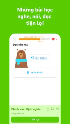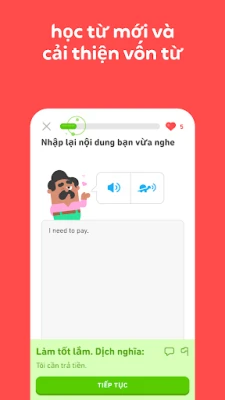 Điều gì làm nên sức hút đặc biệt của Duolingo? Đó là sự kết hợp hoàn hảo giữa hiệu quả và niềm vui. Các bài học được thiết kế theo dạng trò chơi cuốn hút, cùng dàn nhân vật ngộ nghĩnh, không chỉ giúp bạn rèn luyện toàn diện kỹ năng nghe, nói, đọc, viết mà còn biến quá trình học thành một cuộc phiêu lưu đầy hứng khởi. Nền tảng này được xây dựng dựa trên những phương pháp sư phạm khoa học đã được chứng minh, đảm bảo kiến thức ngôn ngữ của bạn được ghi nhớ bền vững. Hơn thế nữa, Duolingo còn giúp bạn duy trì động lực học tập mỗi ngày thông qua hệ thống phần thưởng, thành tích ấn tượng và khả năng theo dõi sát sao lộ trình chinh phục mục tiêu ngôn ngữ của mình.