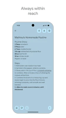 Khả năng tổ chức là chìa khóa để hiệu suất. Google Keep giúp bạn phân loại và quản lý ghi chú một cách thông minh bằng cách tô màu và gắn nhãn riêng biệt, cho phép bạn nhanh chóng sắp xếp và quay lại công việc mà không bị gián đoạn. Khi cần tìm lại bất kỳ thông tin nào, chức năng tìm kiếm mạnh mẽ sẽ đưa bạn đến đúng nơi chỉ trong tích tắc. Không chỉ là công cụ cá nhân, Google Keep còn là nền tảng tuyệt vời để hợp tác. Dễ dàng chia sẻ ghi chú với bạn bè hoặc gia đình để cùng lên kế hoạch cho các sự kiện, hoàn thành dự án nhóm hoặc chỉ đơn giản là chia sẻ ý tưởng, với khả năng cộng tác theo thời gian thực mọi lúc mọi nơi. Với tính năng đồng bộ hóa xuyên suốt, mọi nội dung bạn thêm vào sẽ hiển thị tức thì trên điện thoại, máy tính bảng, máy tính và thiết bị Wear OS của bạn, đảm bảo ghi chú luôn sẵn sàng trong tầm tay.