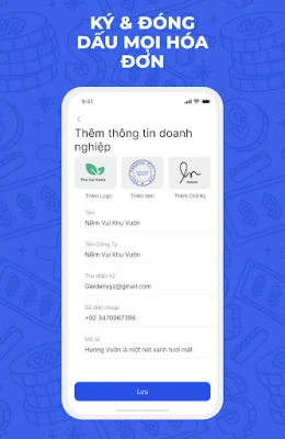 Với "Invoice and Receipt Maker", việc thiết lập mọi thứ diễn ra vô cùng trực quan. Từ thông tin doanh nghiệp, chi tiết khách hàng đến danh mục dịch vụ hay sản phẩm, tất cả đều được sắp xếp gọn gàng trong một giao diện hợp lý, giúp bạn tạo tài liệu chỉ trong nháy mắt. Ứng dụng còn cung cấp khả năng theo dõi trạng thái thanh toán theo thời gian thực, cho phép bạn biết chính xác ai đã thanh toán và ai chưa. Hơn thế nữa, bộ sưu tập mẫu hóa đơn đa dạng, chuyên nghiệp của chúng tôi còn cho phép bạn cá nhân hóa với logo, dấu mộc và chữ ký riêng, thể hiện sự chuyên nghiệp của thương hiệu trong từng giao dịch.