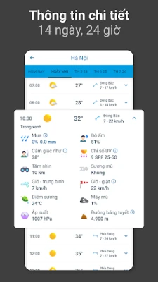 Meteored cung cấp dự báo thời tiết chính xác, đầy đủ cho 14 ngày tới. Xem thông tin hiện tại, cảnh báo, radar mưa, nhiệt độ, chất lượng không khí. Giao diện trực quan giúp bạn dễ dàng nắm bắt mọi thay đổi thời tiết.